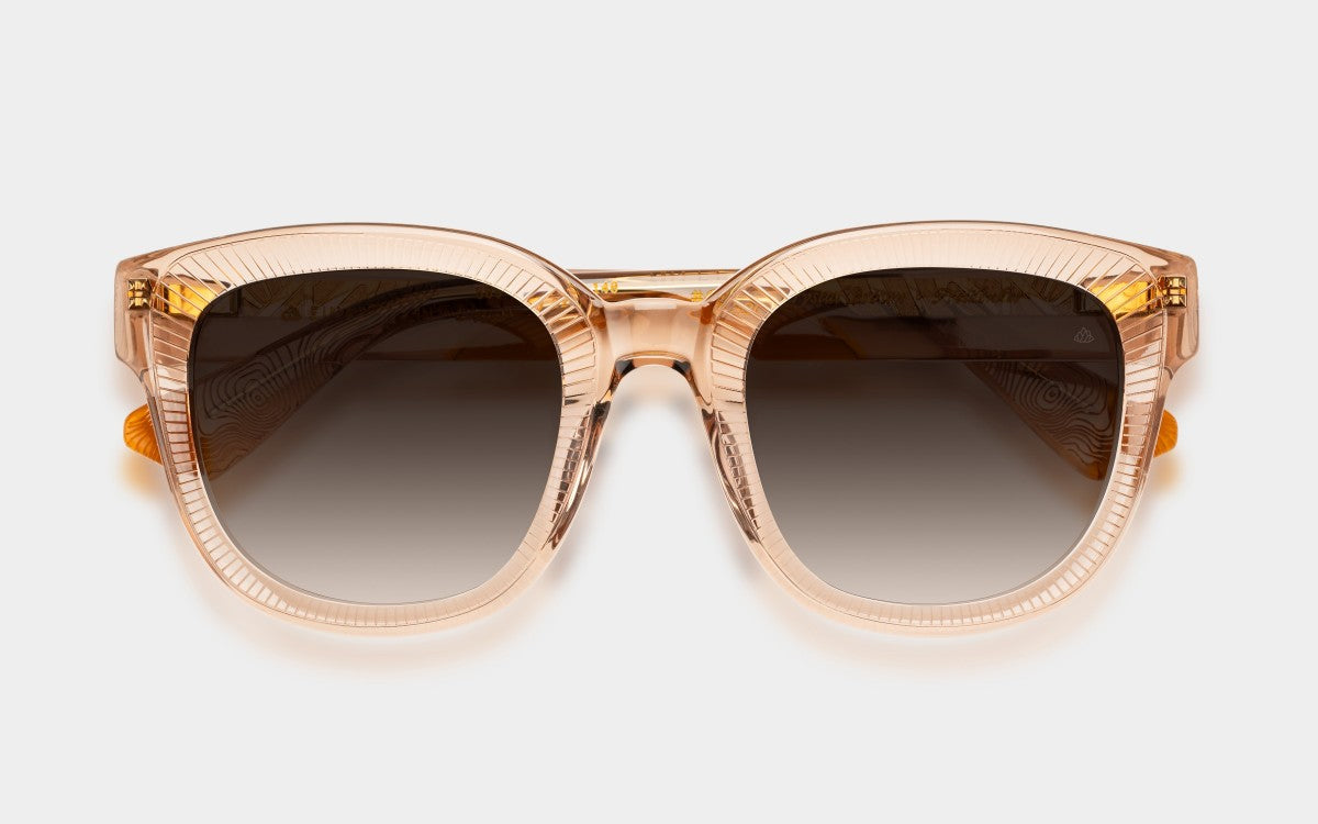 Gafa de sol color caramelo cristal con detalles en relieve en el frente