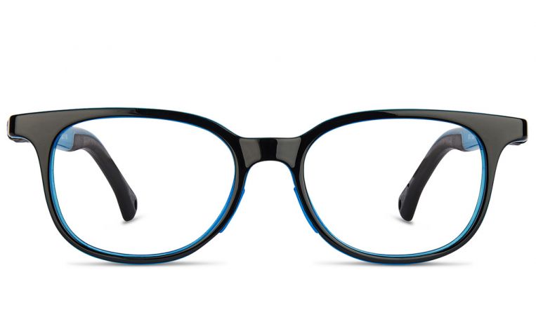 Gafa de graduado NANO fabricada en Siliflex de color negro con detalles azules.