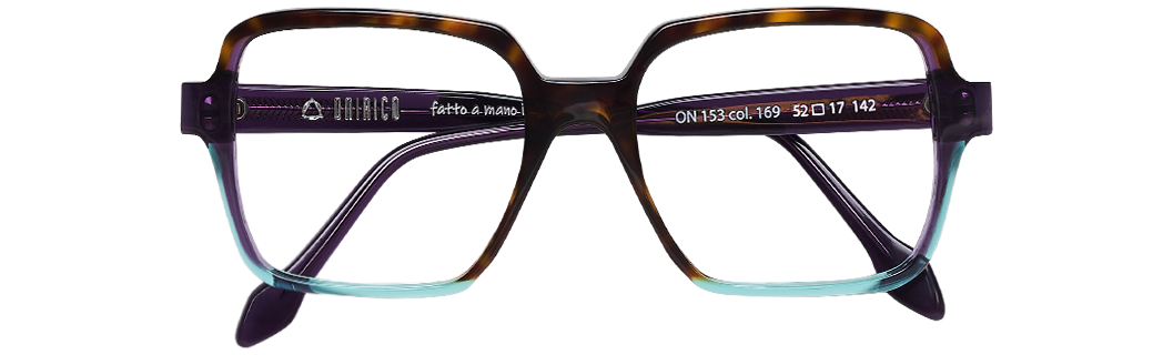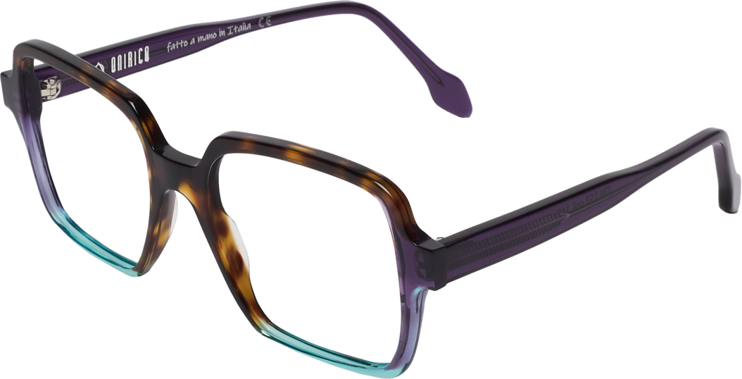 Gafa de graduado color carey con detalles azul turquesa y morado transparente.
