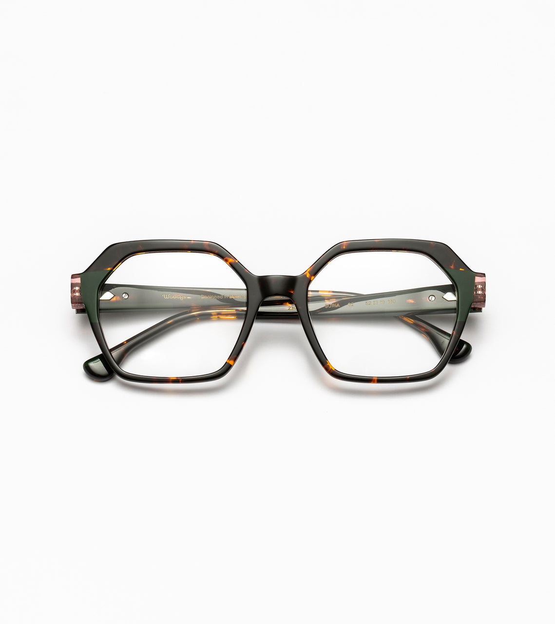 Gafa de graduado de acetato en color carey y detalles verde oscuro.
